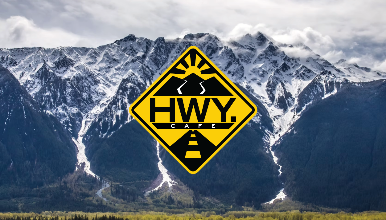 The proposed brand refresh introduces a bold new logo and identity system inspired by North American highway signage, blending practicality with charm. Typography is set in Highway Gothic Expanded, the same letterforms used on Canadian and US highway signs. It's instantly familiar, highly legible, and full of character when used playfully. HWY Cafe is already recognized for their signature yellow, and this rebrand brings that color to life in new ways by incorporating it into traffic-style signage and iconography. Traditional road signs are reimagined with food-forward messages, turning familiar visuals into unique and memorable brand moments. The result is an identity system that feels right at home in its mountain-highway setting and builds on everything the community already loves about HWY Cafe.